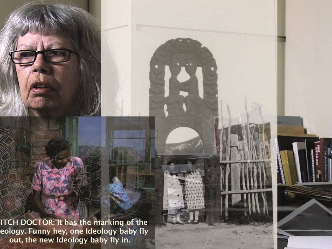 Brook Andrew’s ‘SMASH IT’ (2018) is a digital amalgamation of images, videos, sound and text. Archival film from the Smithsonian Institute collides with found footage and media samples from the artist’s collection. Andrew co-opts and reframes ethnographic photographs, newspaper extracts, film footage and other cultural objects to dismantle racist stereotypes of First Nations people. The work complicates colonial archives and their embedded ideologies by repurposing archival materials to subvert dominant narratives. Throughout, interviews with prominent Australian Indigenous intellectuals, including Marcia Langton, Wesley Enoch and Maxine Briggs, are juxtaposed against imagery of demolished and defaced Western statuary and monuments to colonial power. In its cacophony of voices and materials, ‘SMASH IT’ brings colonial archives into conversation with the present moment, inviting