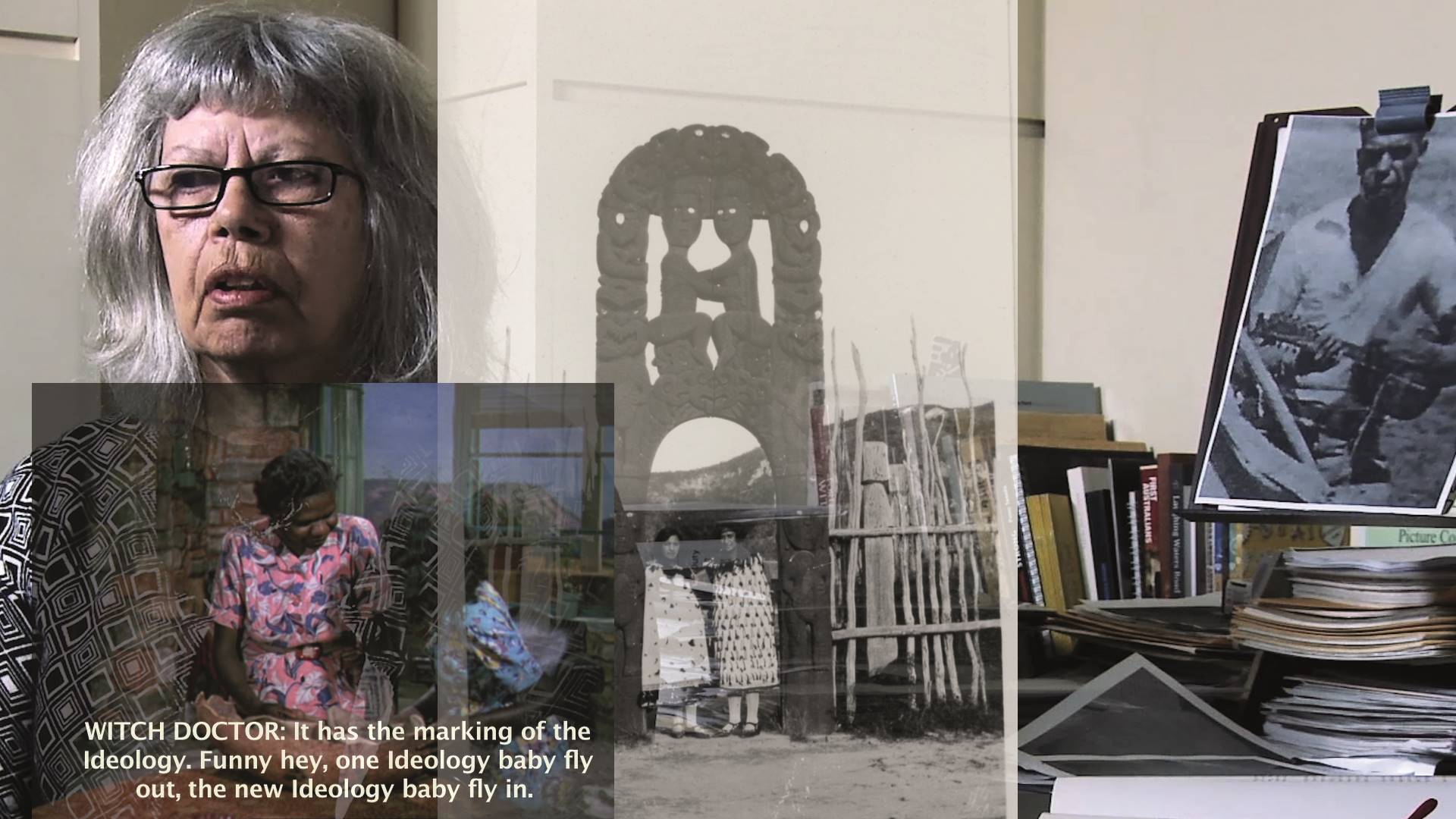 Brook Andrew’s ‘SMASH IT’ (2018) is a digital amalgamation of images, videos, sound and text. Archival film from the Smithsonian Institute collides with found footage and media samples from the artist’s collection. Andrew co-opts and reframes ethnographic photographs, newspaper extracts, film footage and other cultural objects to dismantle racist stereotypes of First Nations people. The work complicates colonial archives and their embedded ideologies by repurposing archival materials to subvert dominant narratives. Throughout, interviews with prominent Australian Indigenous intellectuals, including Marcia Langton, Wesley Enoch and Maxine Briggs, are juxtaposed against imagery of demolished and defaced Western statuary and monuments to colonial power. In its cacophony of voices and materials, ‘SMASH IT’ brings colonial archives into conversation with the present moment, inviting us to consider their contemporary legacies and international relevance. Showing at World Museum
