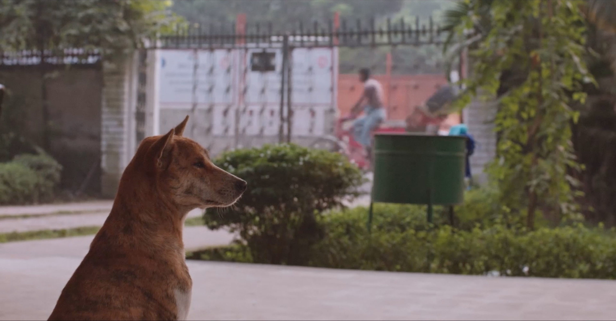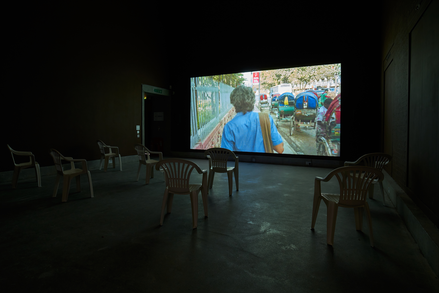 Daniel Steegmann Mangrané presented a newly commissioned outdoor installation at Crown Street Park, and a film at Bluecoat. Steegmann Mangrané’s new outdoor installation, ‘La Pensée Férale’ (2021), brings into question our position in the world – eroding the Western conceptions of being that separate the world into opposing dualisms, for example, nature and culture. The tree trunk at its centre is a scanned replica of a Pau Rei, a native tree of the Brazilian Mata Atlántica, imbedded with the eye of an Indian pariah dog from Bangladesh. Surrounded by a newly planted forest of black beeches, the work raises questions about subjectivity and our attitude towards our environment, reinforcing that nature is not without perception or feeling. Presented in the UK for the first time, Steegmann Mangrané’s film ‘Fog Dog’ (2020)is the artist’s first foray into cinematic storytelling. Premiered at the Dhaka Art Summit 2020, the film is a documentation of daily life at the Institute of Fine Arts of Dhaka. Through different narratives – of colonial violence, bodily knowledge, environmental degradation and the stray and phantom dogs which live at the Institute – the film highlights how multiple worlds are interconnected. Commissioned by Liverpool Biennial with Art Fund support, and the assistance of Bury Art Museum. Additional support received from Acción Cultural Española (AC/E).