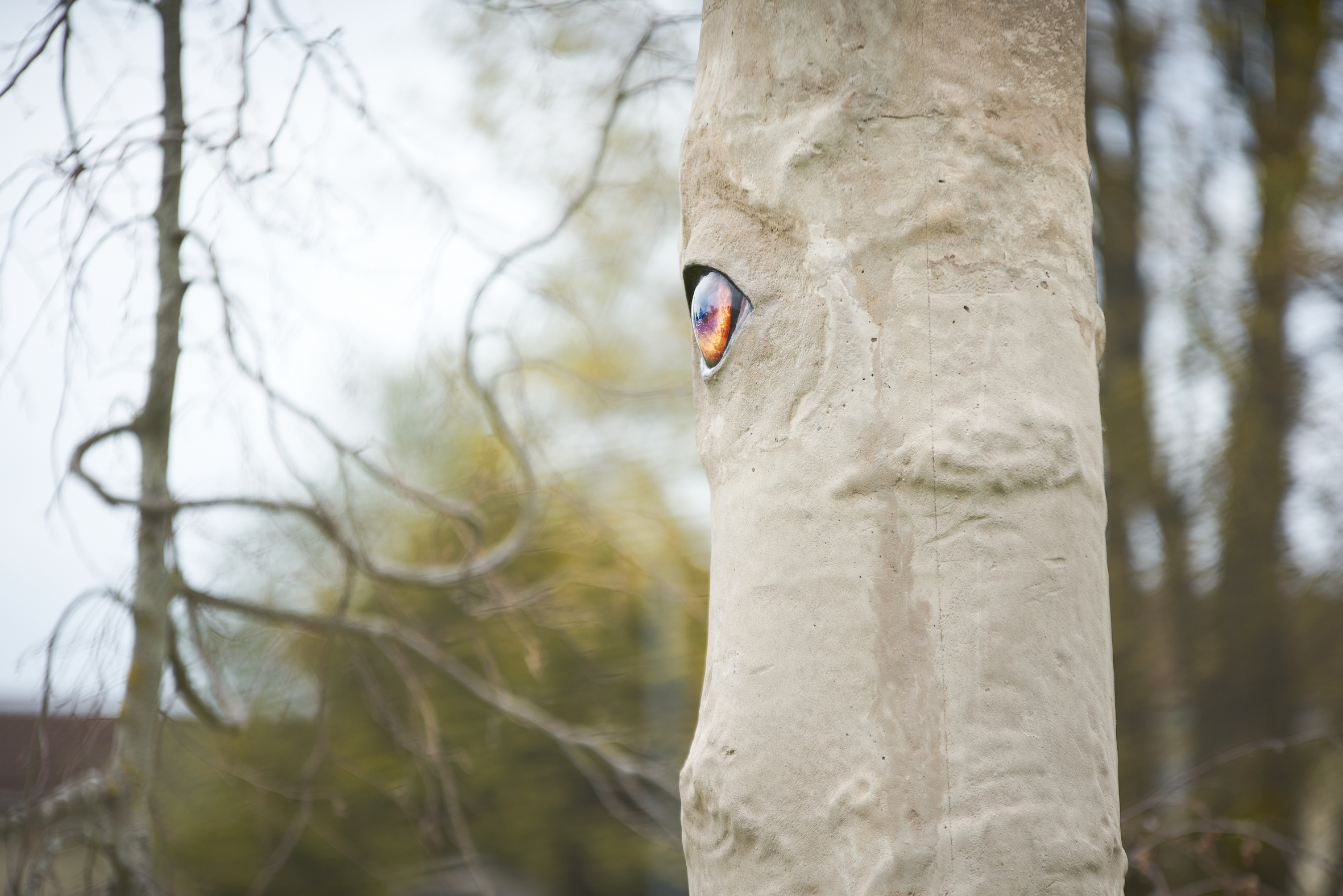 Daniel Steegmann Mangrané presented a newly commissioned outdoor installation at Crown Street Park, and a film at Bluecoat. Steegmann Mangrané’s new outdoor installation, ‘La Pensée Férale’ (2021), brings into question our position in the world – eroding the Western conceptions of being that separate the world into opposing dualisms, for example, nature and culture. The tree trunk at its centre is a scanned replica of a Pau Rei, a native tree of the Brazilian Mata Atlántica, imbedded with the eye of an Indian pariah dog from Bangladesh. Surrounded by a newly planted forest of black beeches, the work raises questions about subjectivity and our attitude towards our environment, reinforcing that nature is not without perception or feeling.