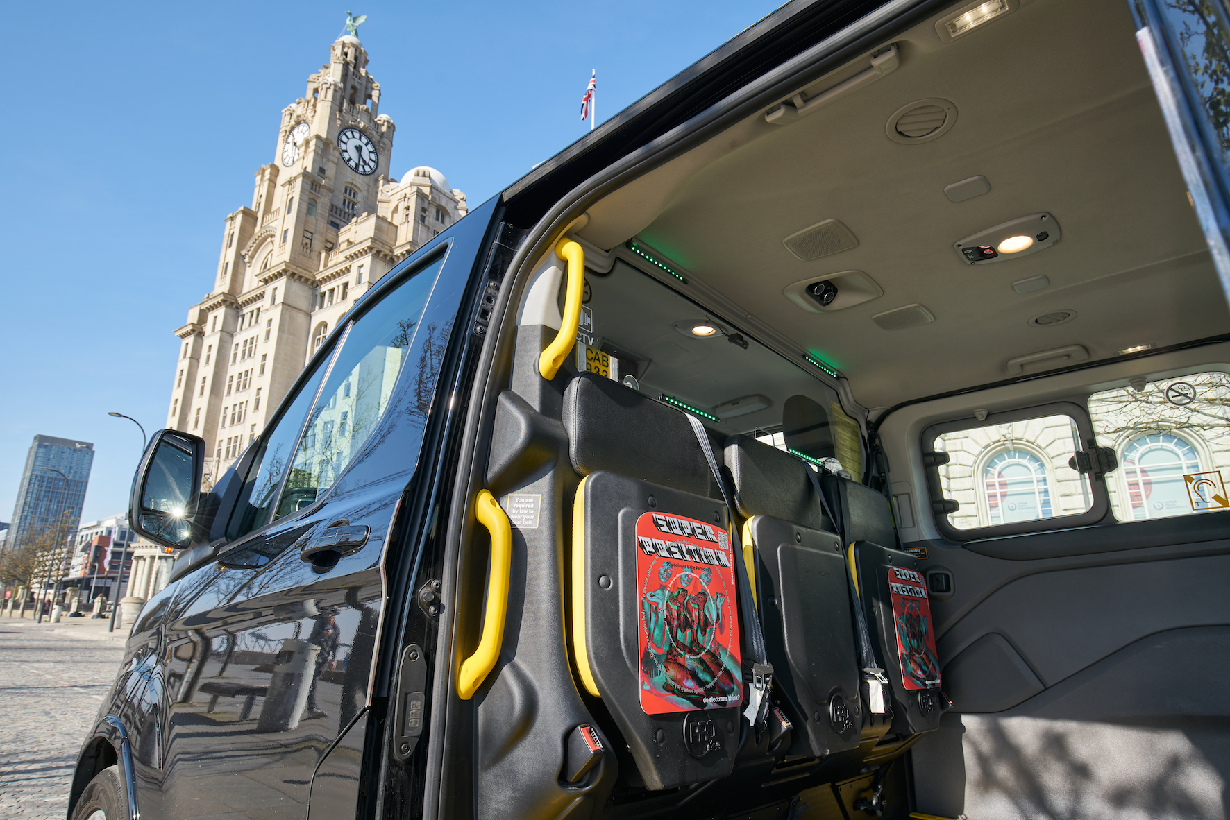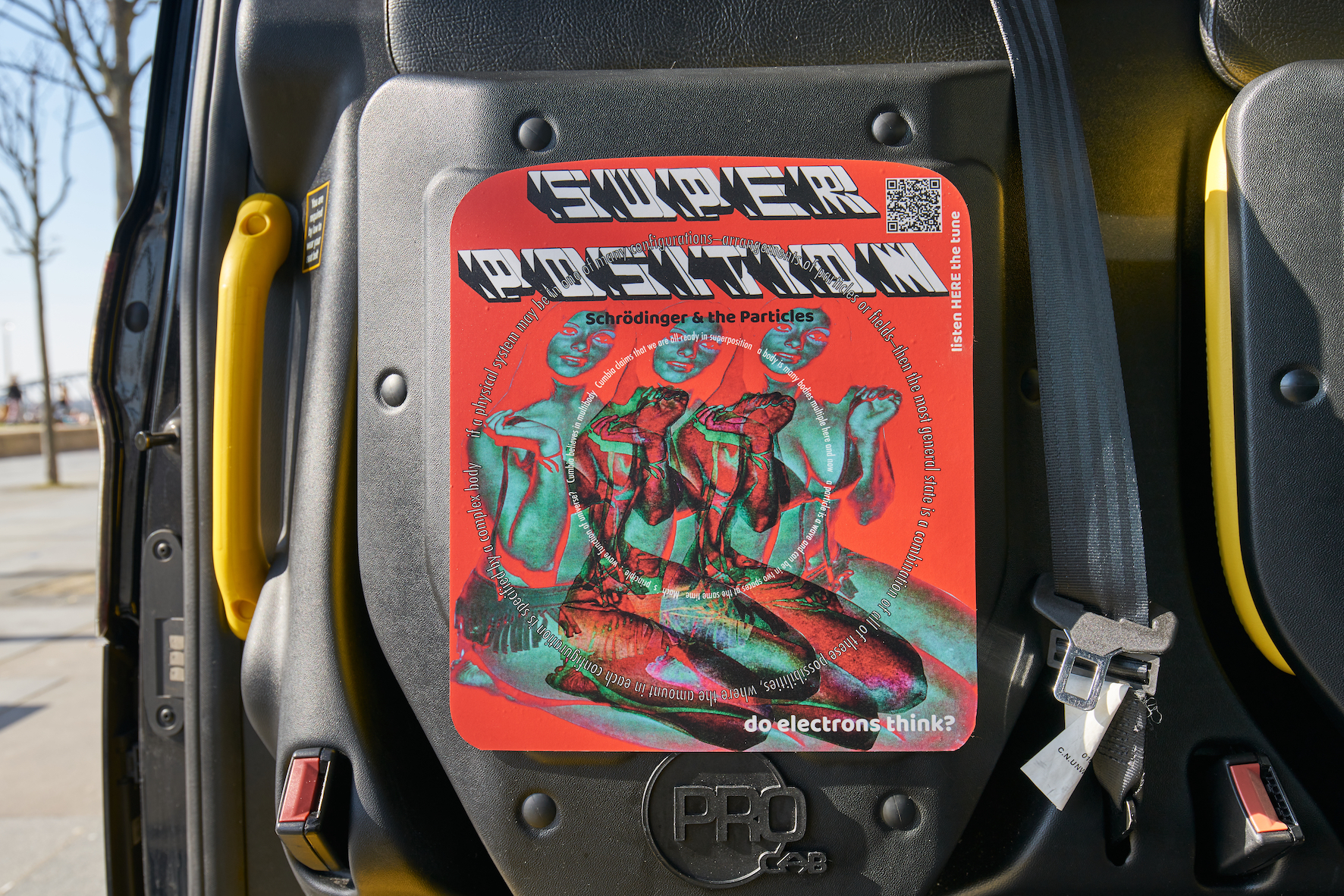Erick Beltrán presented ‘Superposition’ (2021), a set of graphical drawings and corresponding sound pieces in taxi cabs around Liverpool, as well as at The Lewis’s Building. Beltrán’s work revolves around his interpretation of forms and figures, which is informed by his research into the intersection between multiple paradigms – Cumbia music, proprioception, quantum physics, the primordial state, the psychopomp and collective psyche. Hinged on his deconstruction of Cumbia, Beltrán brings to the fore that there are multiple ways of being in the world beyond the conventional understanding of the individual. In this work, the existence is interpreted by the body through ripples and rhythm – pulling and drawing people in as though they are possessed. Once the unit is overflowed with a multi-layered presence, it transforms into a state that is visually a kin to a kaleidoscopic pattern. Different types of ontological frameworks and velocities are central to this narrative, including our perception of frequency, harmonics, bodily knowledge and dream states. Commissioned by Liverpool Biennial. Supported by Patronato de Arte Contemporáneo, P.A.C., Embassy of Mexico in the United Kingdom and Com Cabs.