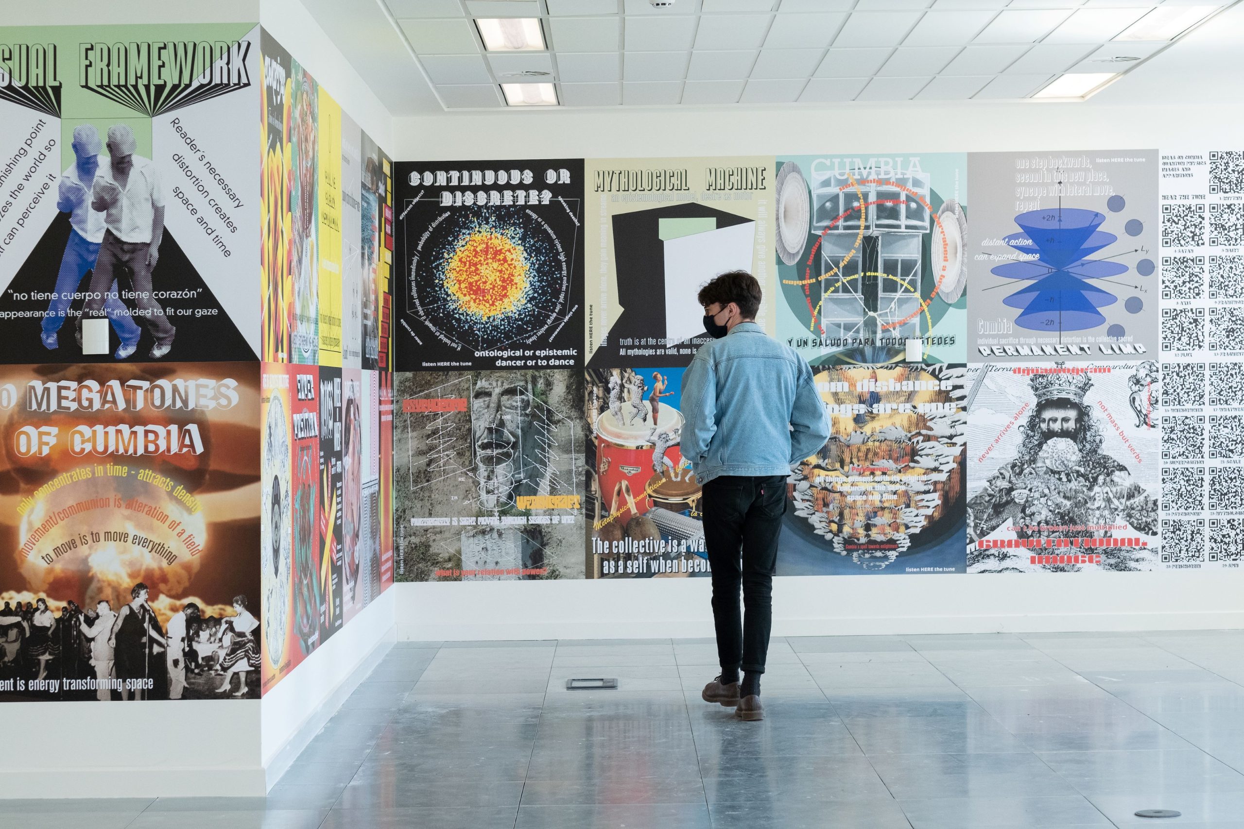 Erick Beltrán presented ‘Superposition’ (2021), a set of graphical drawings and corresponding sound pieces in taxi cabs around Liverpool, as well as at The Lewis’s Building. Beltrán’s work revolves around his interpretation of forms and figures, which is informed by his research into the intersection between multiple paradigms – Cumbia music, proprioception, quantum physics, the primordial state, the psychopomp and collective psyche. Hinged on his deconstruction of Cumbia, Beltrán brings to the fore that there are multiple ways of being in the world beyond the conventional understanding of the individual. In this work, the existence is interpreted by the body through ripples and rhythm – pulling and drawing people in as though they are possessed. Once the unit is overflowed