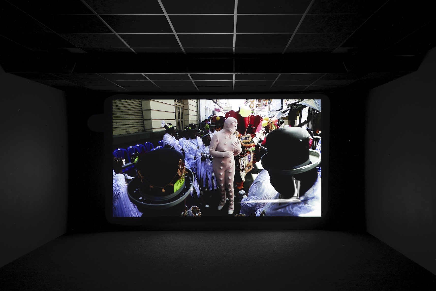 Ines Doujak (b. 1959, Klagenfurt, Austria) lives and works in Vienna, Austria. Doujak’s multidisciplinary practice spans across photography, performance, film and installation. She is working on deconstructing the political implications of sexist and racist stereotypes. Drawing on the tradition of carnival, masquerade and motifs from cultural history, she uncovers exploitative structures and inequalities in society, often in relation to colonial histories. Her research into the textile industry has resulted in numerous works concerning gender, class and cultural conflicts related to the global production, trade and distribution of fashion and textiles. Exhibitions include Bergen Assembly, Norway (2019); Kochi-Muziris Biennale, India (2018); Dhaka Art Summit, Bangladesh (2018); Lentos Kunstmuseum, Austria (2018); Para Site, Hong Kong (2018); and documenta 12, Kassel (2007).