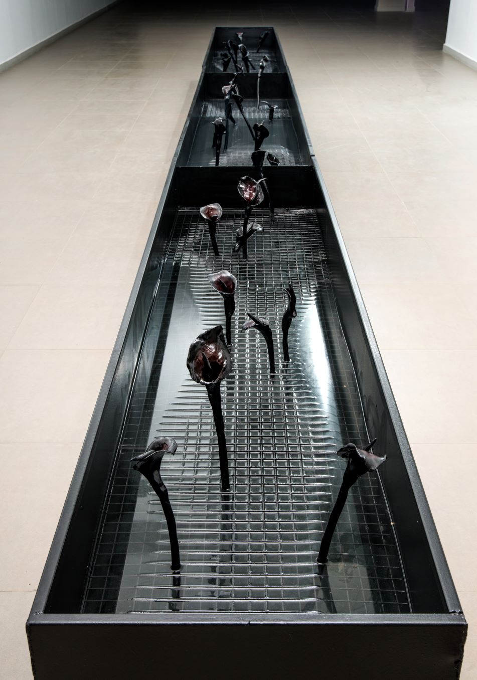 In addition Hamzi produces sculptural works and installations, related to ritual objects and religious texts– which are physically and conceptually manipulated by the artist to evoke new signification. Botanical images enable her to deal with these thorny topics and convey her stance and critique; she also employs flowers in her work to raise questions about women’s traditional role and the expression of their sexuality. Indeed, flowers—recognized as the sexual organ of plants– provide a suitable analogy for this cause because their stages of development serve as apt representations of human development, reproductive capacity, provision of nourishment, and more. As Hamzi reminds us, flowers are not only symbols of fertility and fecundity that allow her to discuss, challenge, and question socio-cultural attitudes toward women; they also serve to emphasize the close links between humans and the natural landscape. This, too, she tethers to the local context and her biographical background. Representing native plants, she also, perhaps more subtly, calls attention to the local political context.