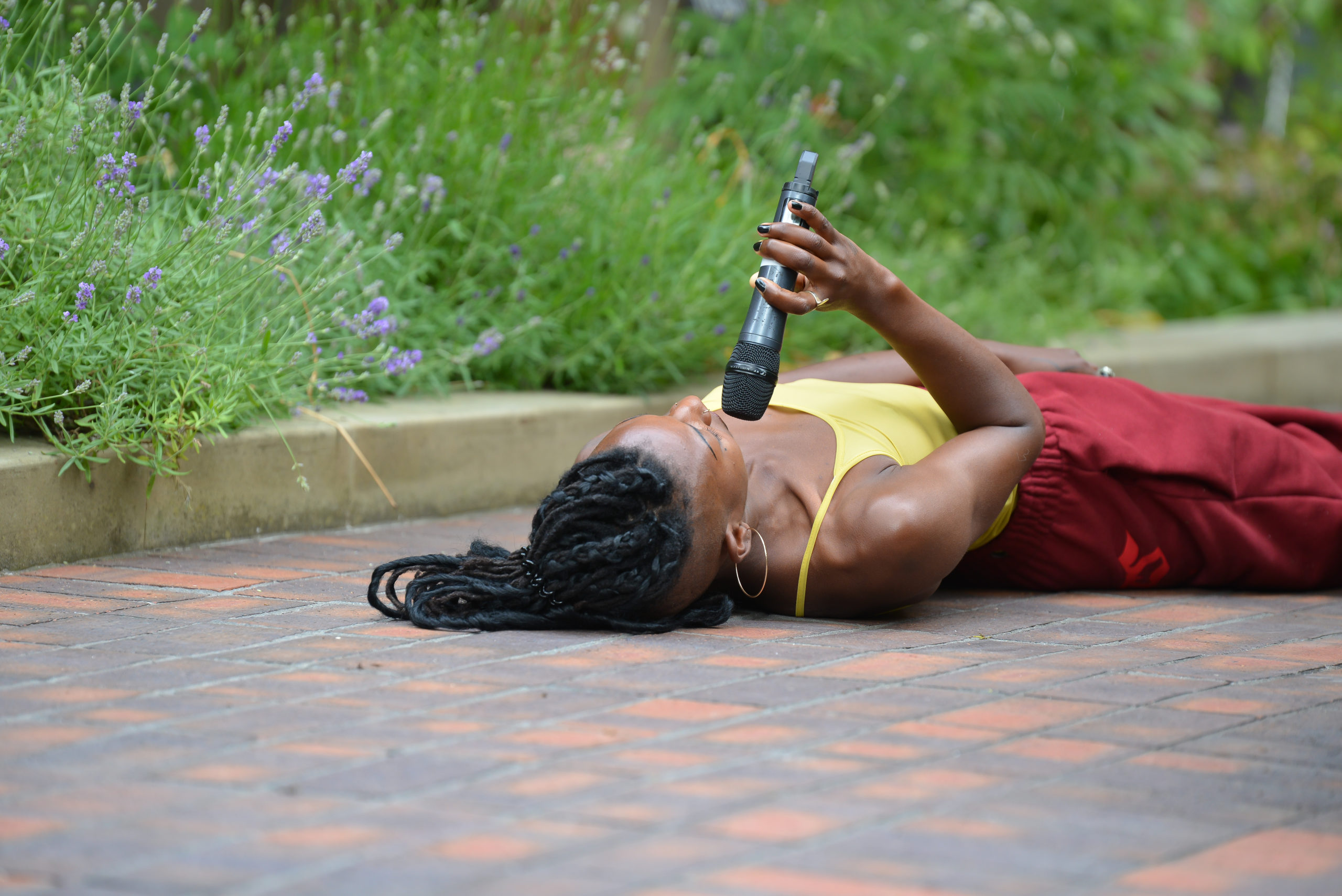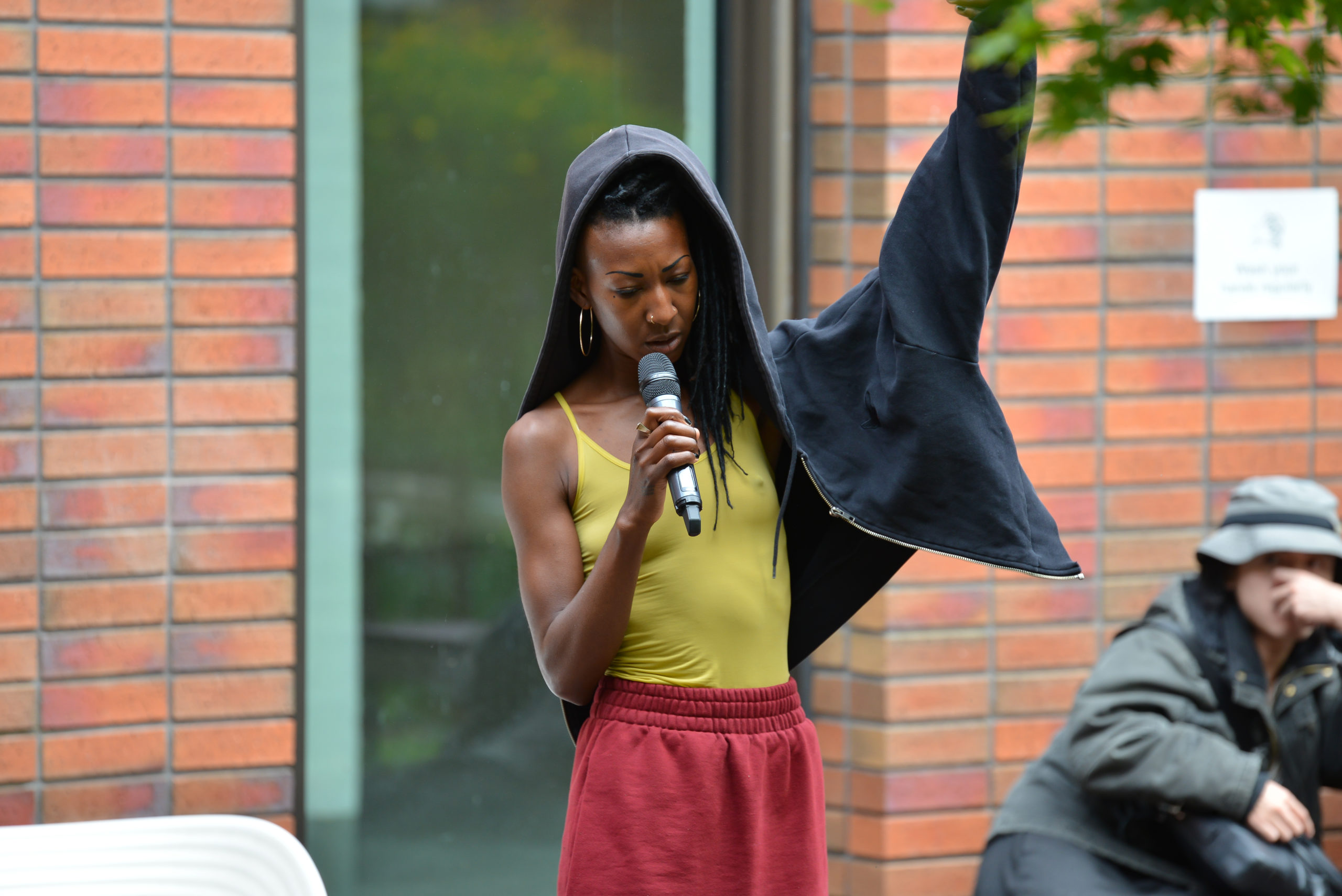 SERAFINE1369 presented durational performance ‘I I I (something flat, something cosmic, something endless)’ (2021) at Bluecoat Gardens on Sunday 20 March, from 2–8pm. A work made in a moment when all that was there was this body, its dreams and nightmares and cycles and needs, sensations and wanting. I went mining. I haunt this work. I is a collection of already historical circumstances, remembered and un-remembered. I is a crowd. I is a trick of the light. A durational performance inducing a state of expansiveness and detachment from the pressure to create – or be formed by – meaning through conventional narrative arcs. Its duration witnesses / tracks the rhythmic cycles, the peaks and troughs of an endocrine system beyond the arc of climax. The work situates a research and obsession with the unit of ‘one minute’ – asking whether we can transform the stuff of time or whether it transforms us. Considering the invention of colonial time and agency, the ways we inhabit its units of fixed endless measurement, even as this Time slips out of relation to the celestial bodies that have long been its anchor and justification. Working with live and recorded text written over the last year from dreams and heartache and reflection – a wasteland of feeling – ‘I I I (something flat, something cosmic, something endless)’ is a wide and flat landscape as score for performance. A reading, a listening, a movement. The performance took place as part of Liverpool Biennial’s Live Weekend (19–20 June). Commissioned by Liverpool Biennial.