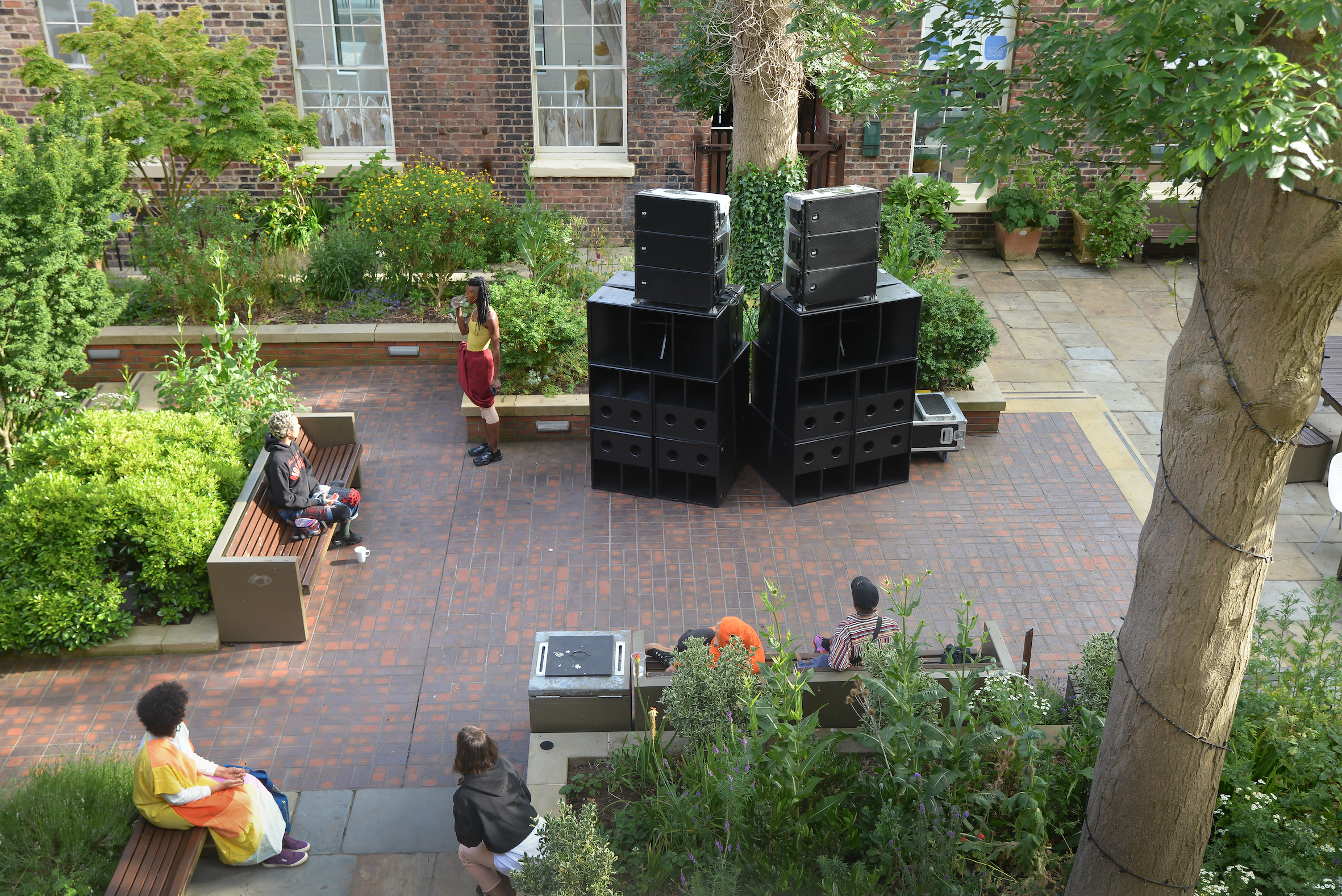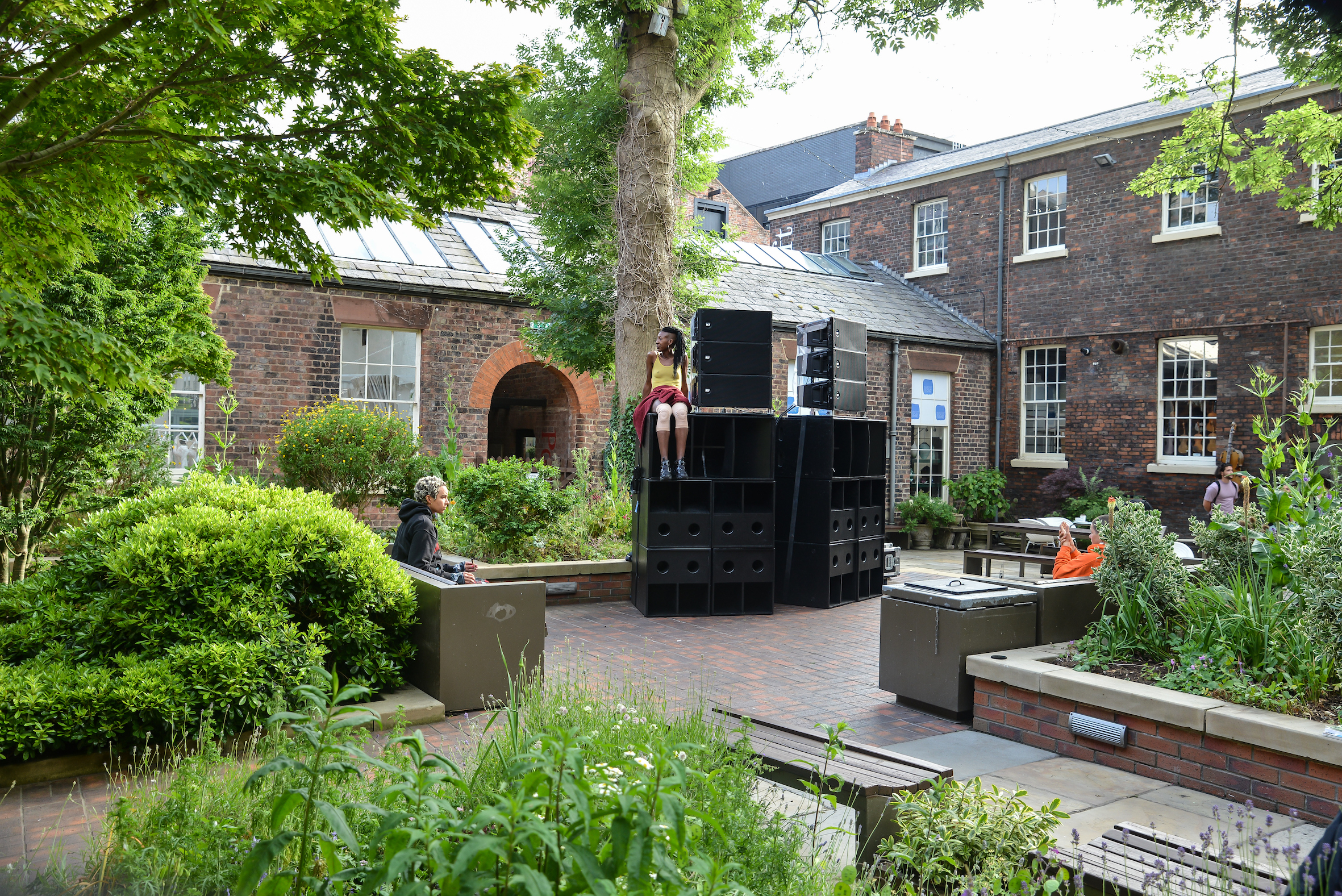 SERAFINE1369 presented durational performance ‘I I I (something flat, something cosmic, something endless)’ (2021) at Bluecoat Gardens on Sunday 20 March, from 2–8pm.