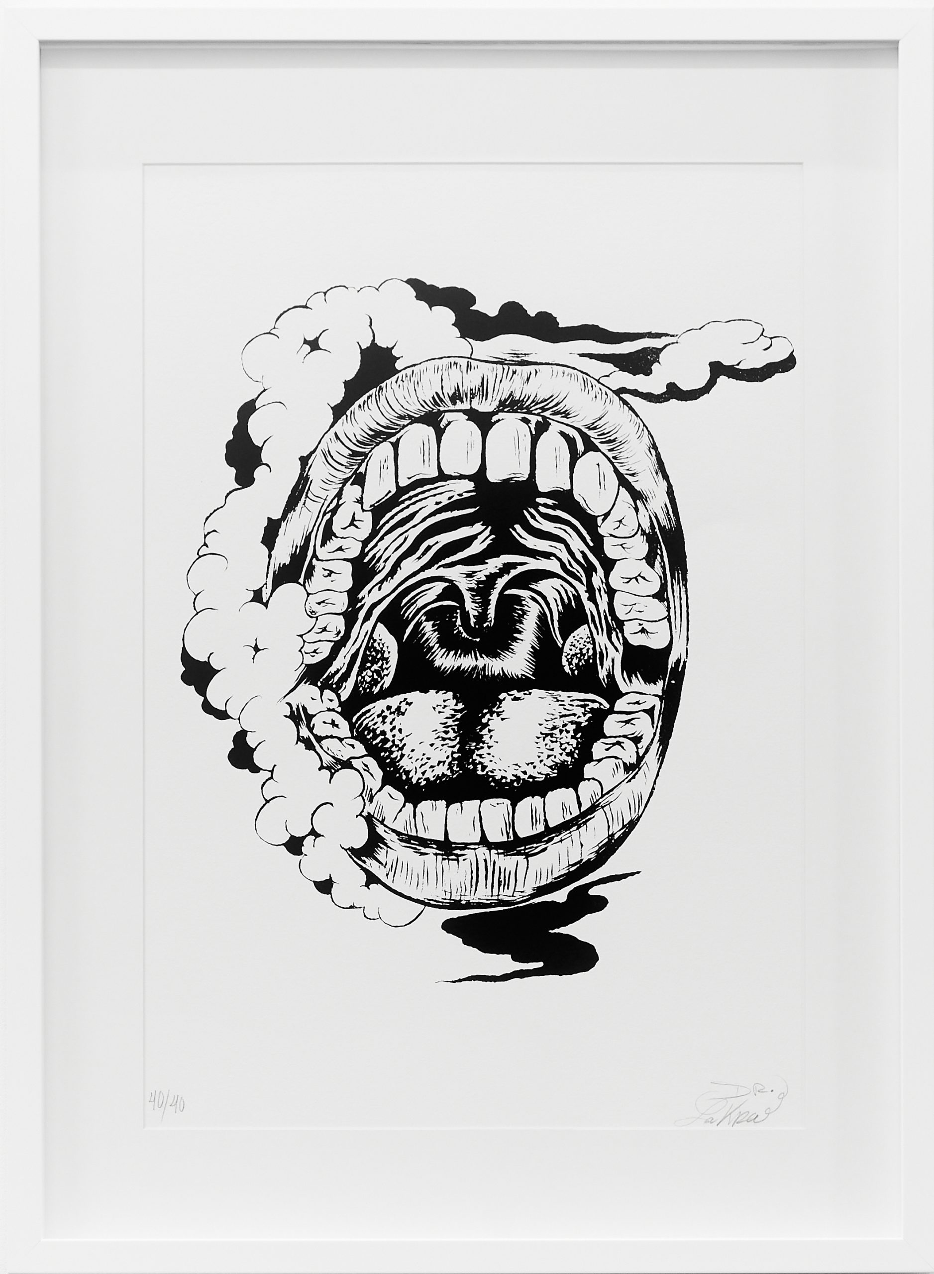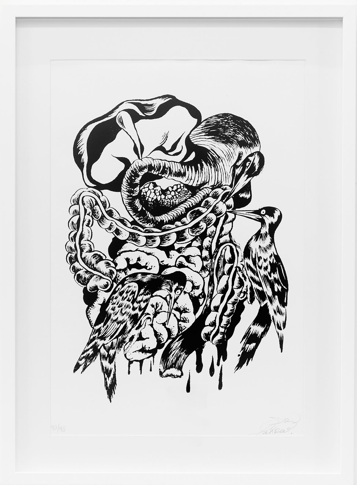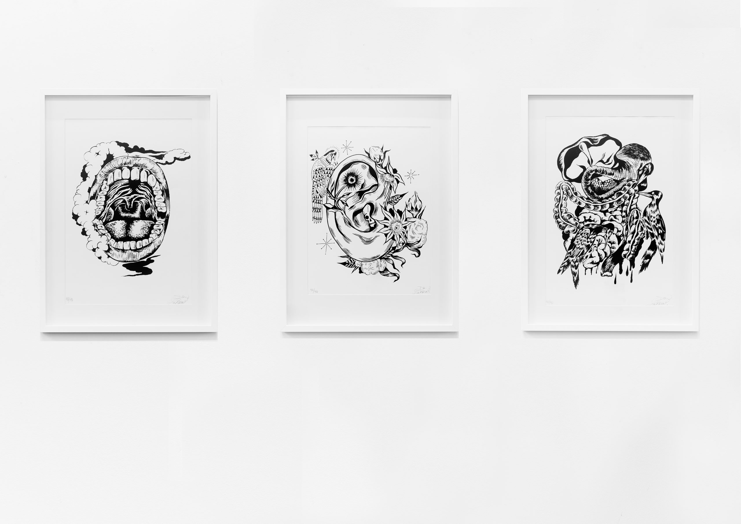 Dr. Lakra’s silkscreen printed editions mirror his Liverpool Biennial 2021 commissioned graphics that centre around features of the body and Liverpool’s port identity – illustrations that have become increasingly recognisable and synonymous with the 11th biennial chapter. These works were printed by hand at the artist’s studio, El Ojo Peludo, in Oaxaca, Mexico.