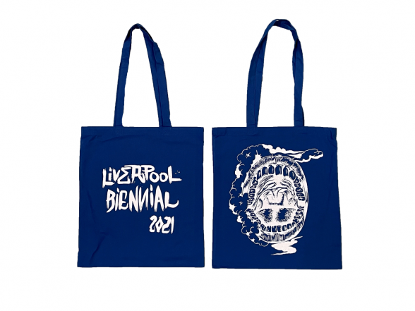 This tote bag was designed for Liverpool Biennial 2021 by Dr Lakra with Sara De Bondt and Mark El-khatib.