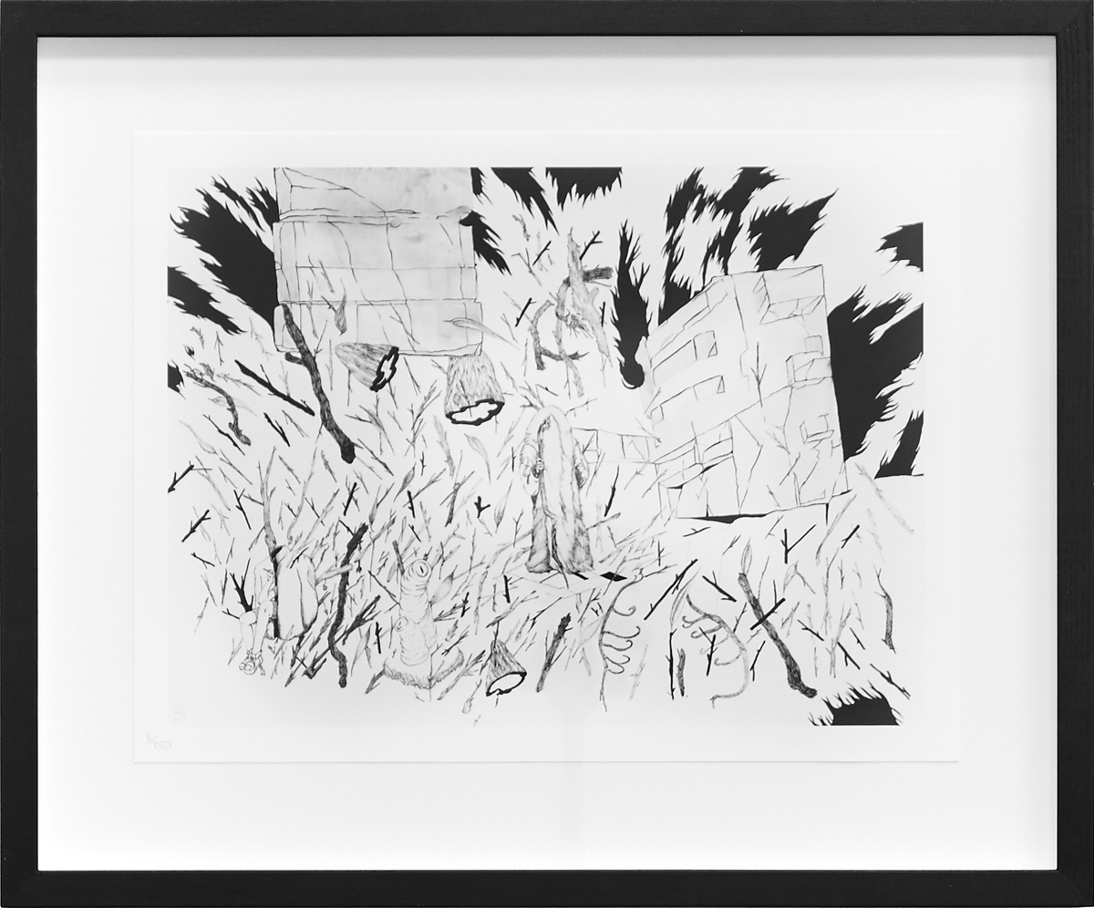 This edition represents a character that recurs throughout The Two-Sided Lake: Episodes, Scenarios and Sets from Liverpool Biennial 2016, the book that has been produced on the occasion of the Biennial. The character is a hermaphrodite narrator who Rahal imagines as a shapeshifting forest.