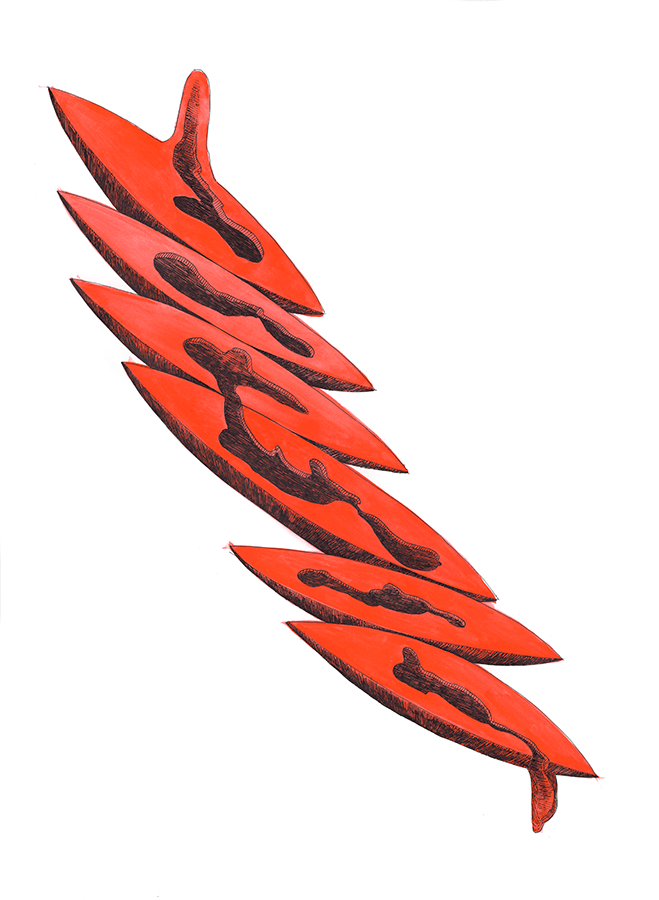 This work serves as a companion print to her newly commissioned outdoor installation, titled Osteoclast (I do not know how I came to be on board this ship, this navel of my ark), exhibited at Liverpool Biennial 2021: The Stomach and the Port.